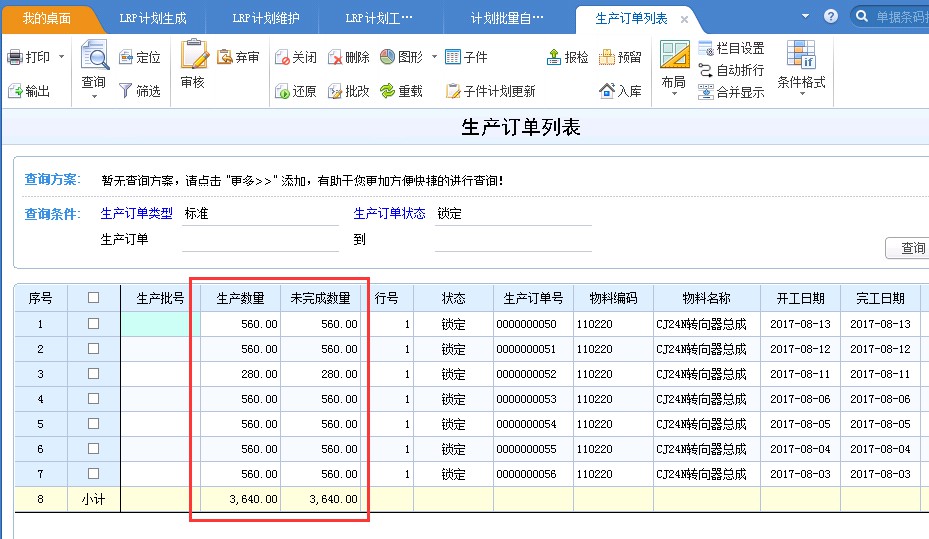 3.下達生產(chǎn)完成后,相應(yīng)彈出“生產(chǎn)訂單自動生成”界面,可看到下達的生產(chǎn)計劃